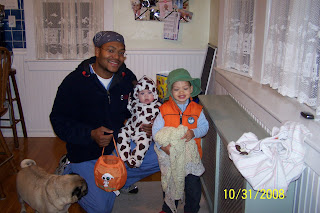 Cookie took the boys out trick or treating and I stayed home to give out the candy. Cookie went dressed as a doctor, Elijah was Diego, & Samuel was a cow. Everyone had a great time Elijah loved going door to door saying "trick or treat" and Samuel had a blast just being out. Elijah came how with so much candy I think it might last him till next year.